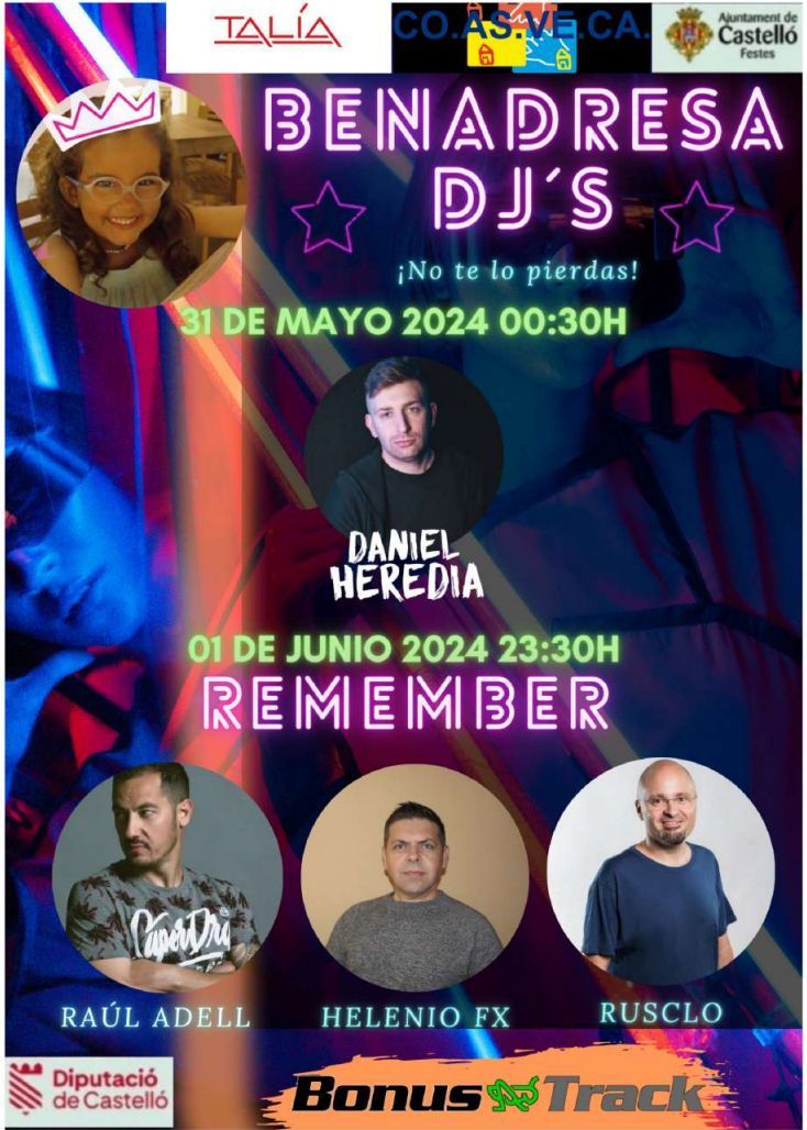 Juntamos a 3 de los componentes del Bonus Track: Rusclo, Helenio FX y Raúl Adell. Por una noche para recordarte la música de tu vida en formato dance. Nos vemos el próximo 1 de Junio